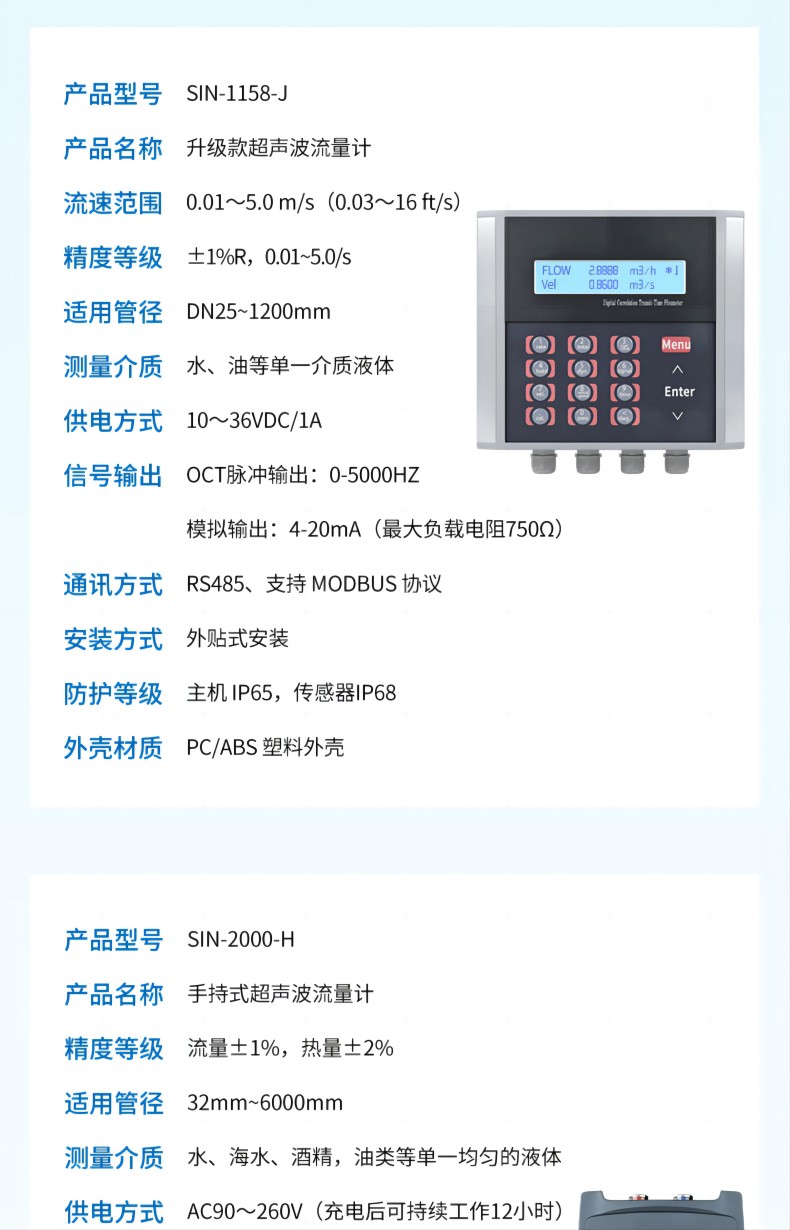 產品名稱:聯測_SIN-2100H超聲波流量計_便攜/手持_無雜質液體_不破管安裝