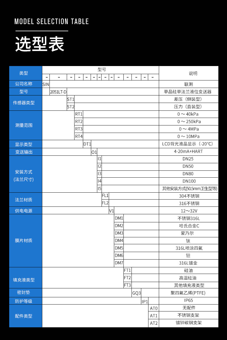 產品名稱:聯測_SIN-2051LT單法蘭液位變送器 敞口罐 高精度遠傳信號