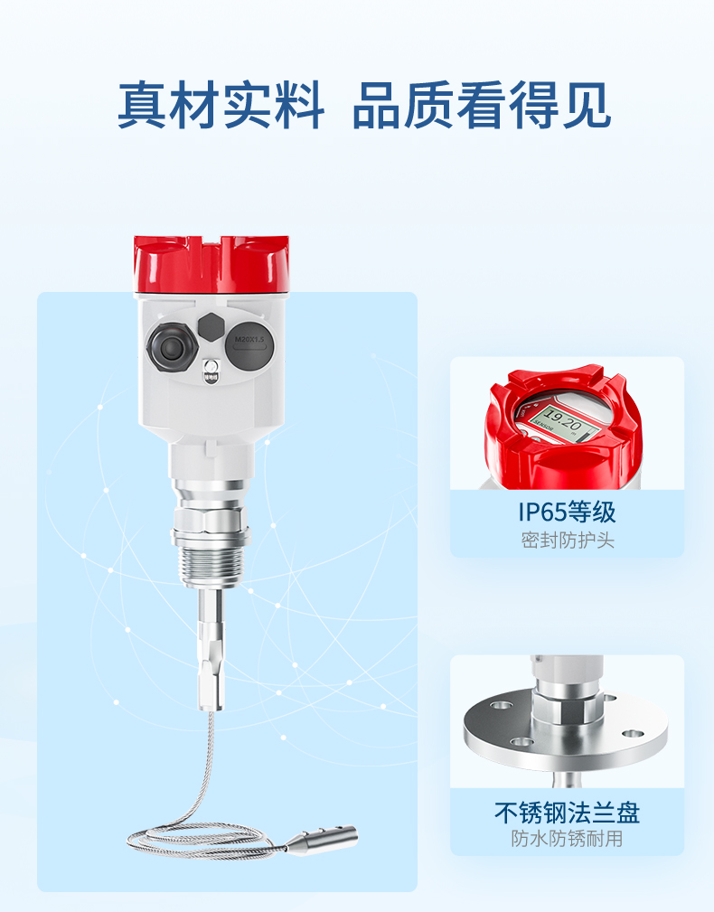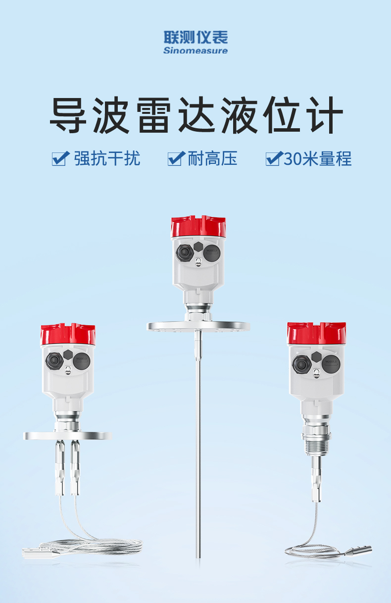 產品描述:導波雷達發出的高頻微波脈沖沿著探測組件(鋼纜或鋼棒)傳播, 遇到被測介質,由于介電常數突變,引起反射,一部分脈沖能量被反射 回來。發射脈沖與反射脈沖的時間間隔與被測介質的距離成正比。CN3