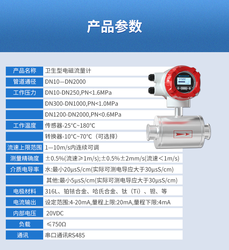 產品名稱:聯測_LDG-SIN衛生型電磁流量計_卡箍流量計_食品/制藥行業