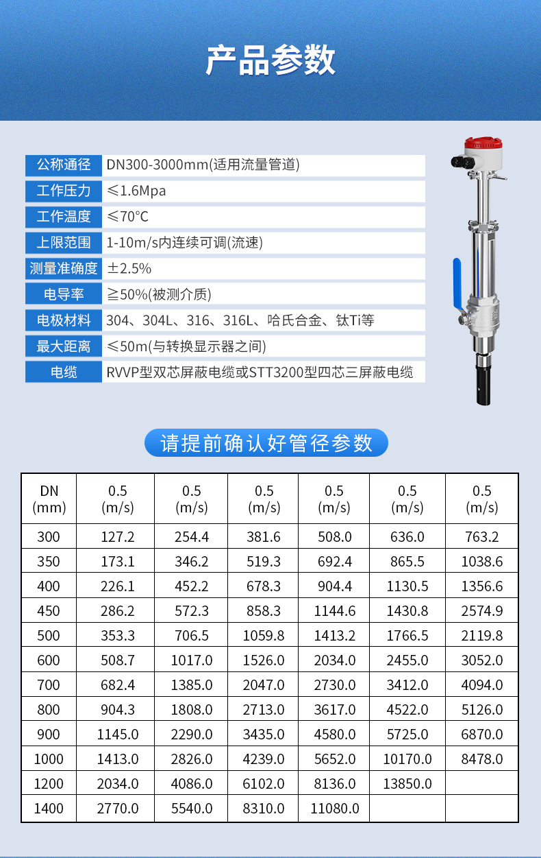 產品描述:在工業、農業、水利、環保污水監測、城市供水等各個部門用來測量各種導電液體的流量和總量。相比管道式的流量計而言,插入式的電磁流量計的測量普遍適用于較大的管道口徑,在大口徑的管道上,插入式的電磁流量計更具優勢!