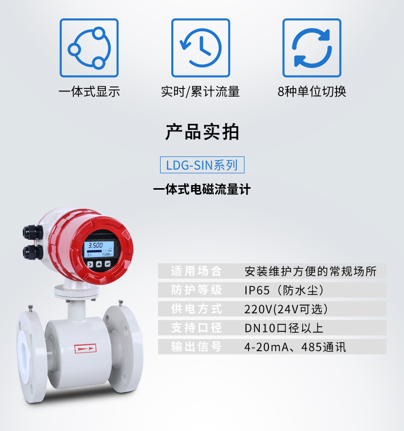 產品描述:聯測LDG電磁流量計適用于化工助劑、海綿城市、給水排水、水利灌溉、水處理、污水處理(環保污水控制、化工污水、電鍍污水)、造紙漿液(紙漿)、泥漿、醫藥原料、食品等工農業的生產公司過程流量測量和控制,標配485通訊功能。