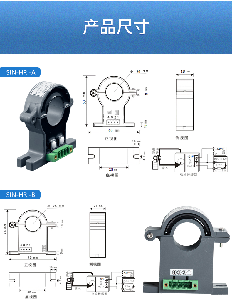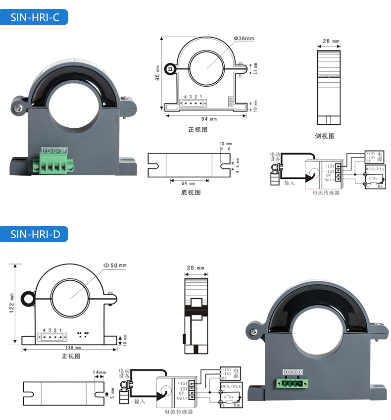 產品名稱:聯測_閉合式霍爾電流變送器_孔徑:4/6/8/12....../45/55/72mm