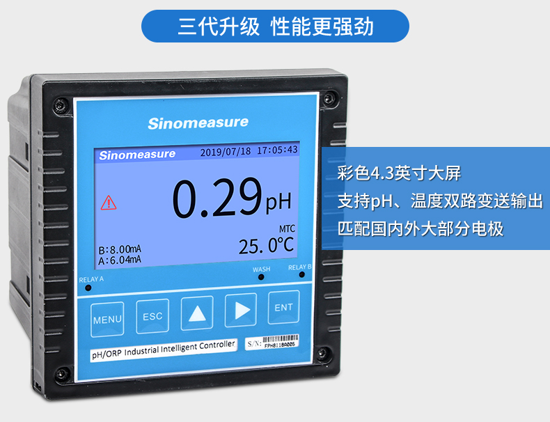 產(chǎn)品名稱:聯(lián)測_SIN-pH/ORP8.0大屏4.3英寸在線pH計(jì)_帶記錄_帶清洗