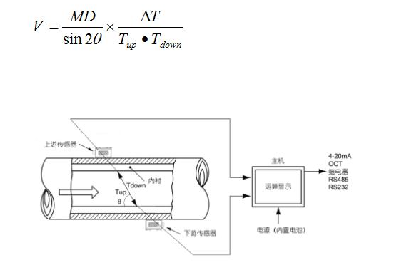 手持式海水超聲波流量計是通過聲波來進行測量流速從而反應流量的。當手持式海水超聲波流量計發出的超聲波束在海水中傳播時,海水的流動將使傳播時間產生微小變化,其傳播時間的變化正比于海水的流速。零流量時,兩個手持式海水超聲波流量計傳感器發射和接收聲波所需的時間完全相同(唯一可實際測量零流量的技術),海水流動時,逆流方向的聲波傳輸時間大于順流方向的聲波傳輸時間。