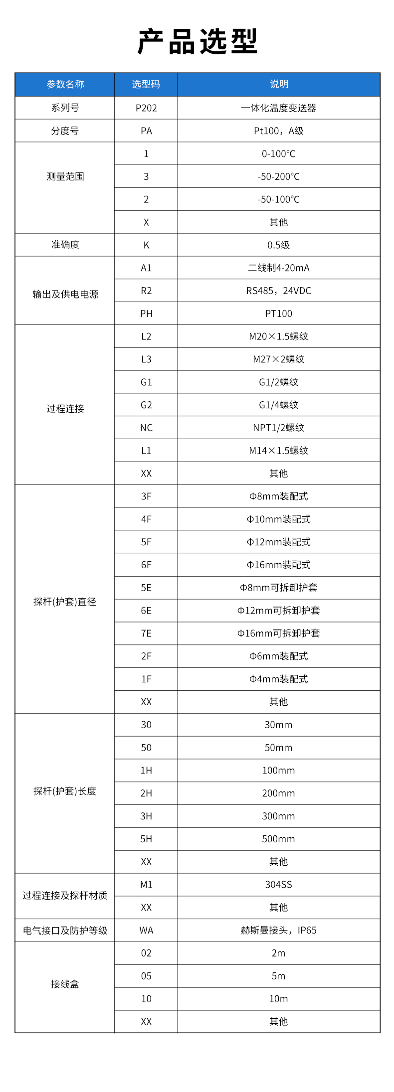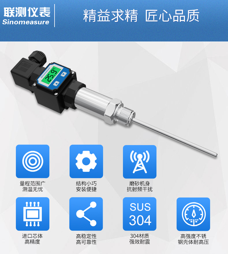 產品描述:智能溫度變送器,用于熱電阻(RTD)輸入,二線制( 4~ 20)mA 模擬輸出、RS485 輸出。內置最新的 ASSIC 單芯片 集成電路,采用高精度 24 位 ADC 轉換為數字信號,產品 具有測量準確、工作穩定、使用壽命長等特點。