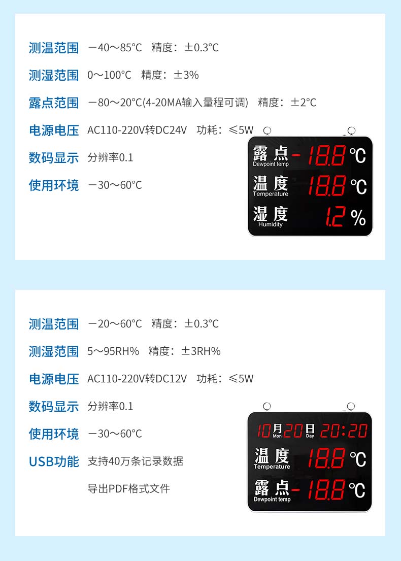 測量精度 濕度:±3%,溫度:±0.3℃,露點:±2℃