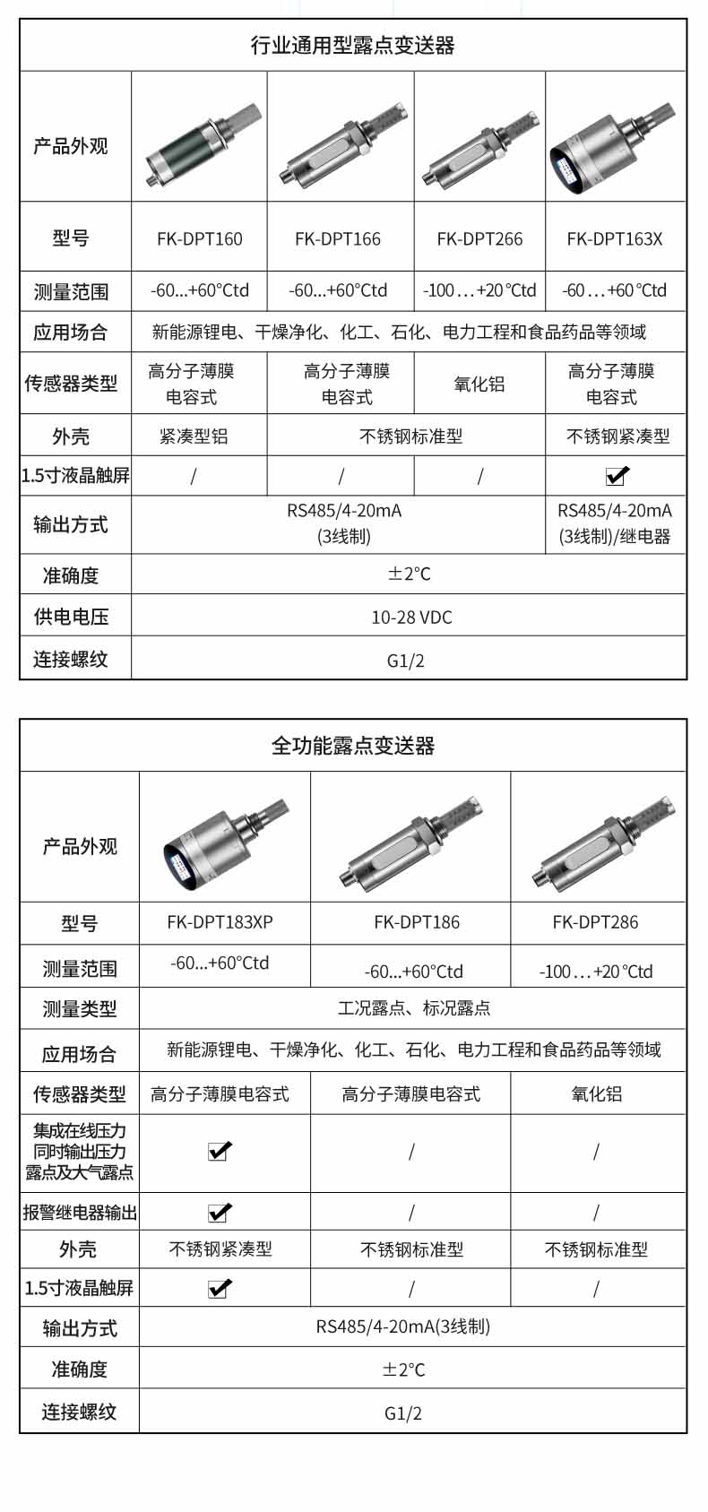 -40℃td,高分子電容傳感器對比于其他類型的傳感器在該區間無論是精準度、響應速度還是長期穩定性均為最優,并且性價比最高; 革新的自校準電路設計,能自動補償溫度、污染、老化引起的電路漂移,提供長期可靠的高精度測量; 創新的溫度補償算法及出廠前多點溫度的補償校驗,大大改善了傳感器的溫度漂移,保證了寬溫度范圍內的高精度測量咨詢熱線:400-185-1718">