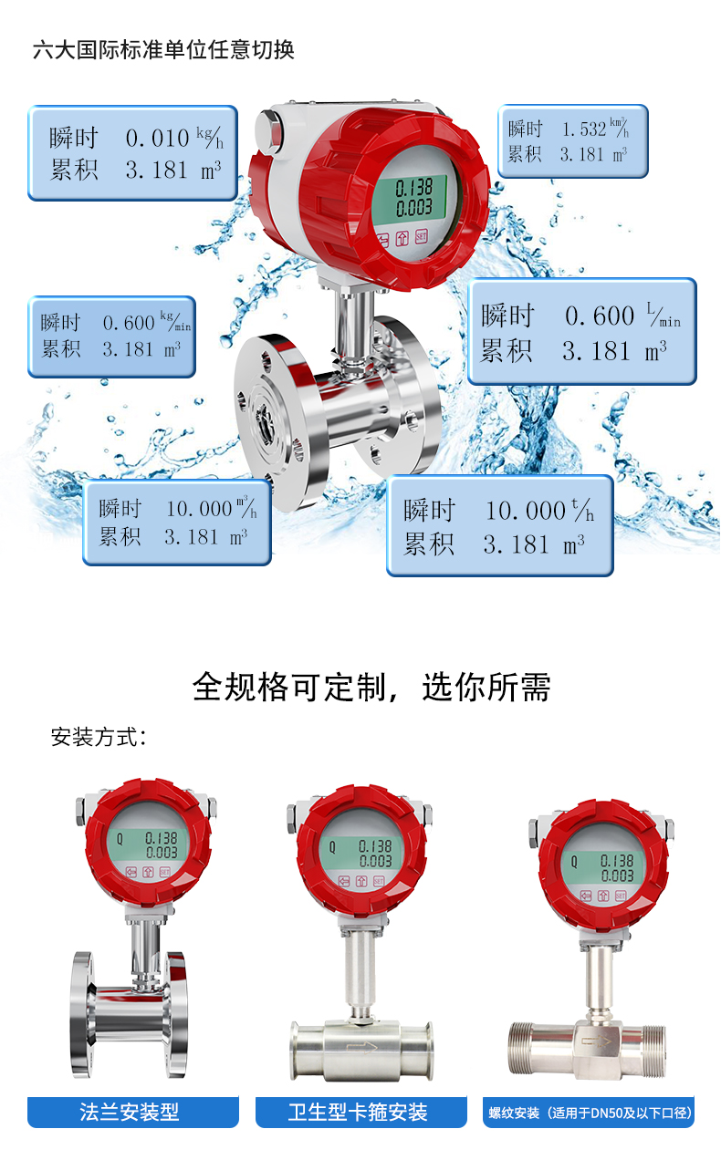 產品描述:液體渦輪流量計基于力矩平衡原理,屬于速度式流量儀表。它具有準確度高、重復性好、結構簡單、壓力損失小、維修方便等優點,于測量封閉管道中低粘度液體的體積流量。在石油、化工、冶金、供水、造紙等行業中具有廣泛的應用。