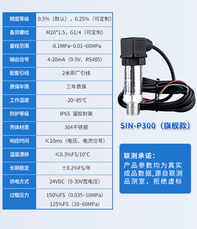 產(chǎn)品名稱:聯(lián)測_SIN-P300 -擴散硅壓力變送器 -批量價199元/支 ,3年質保, 常規(guī)現(xiàn)貨