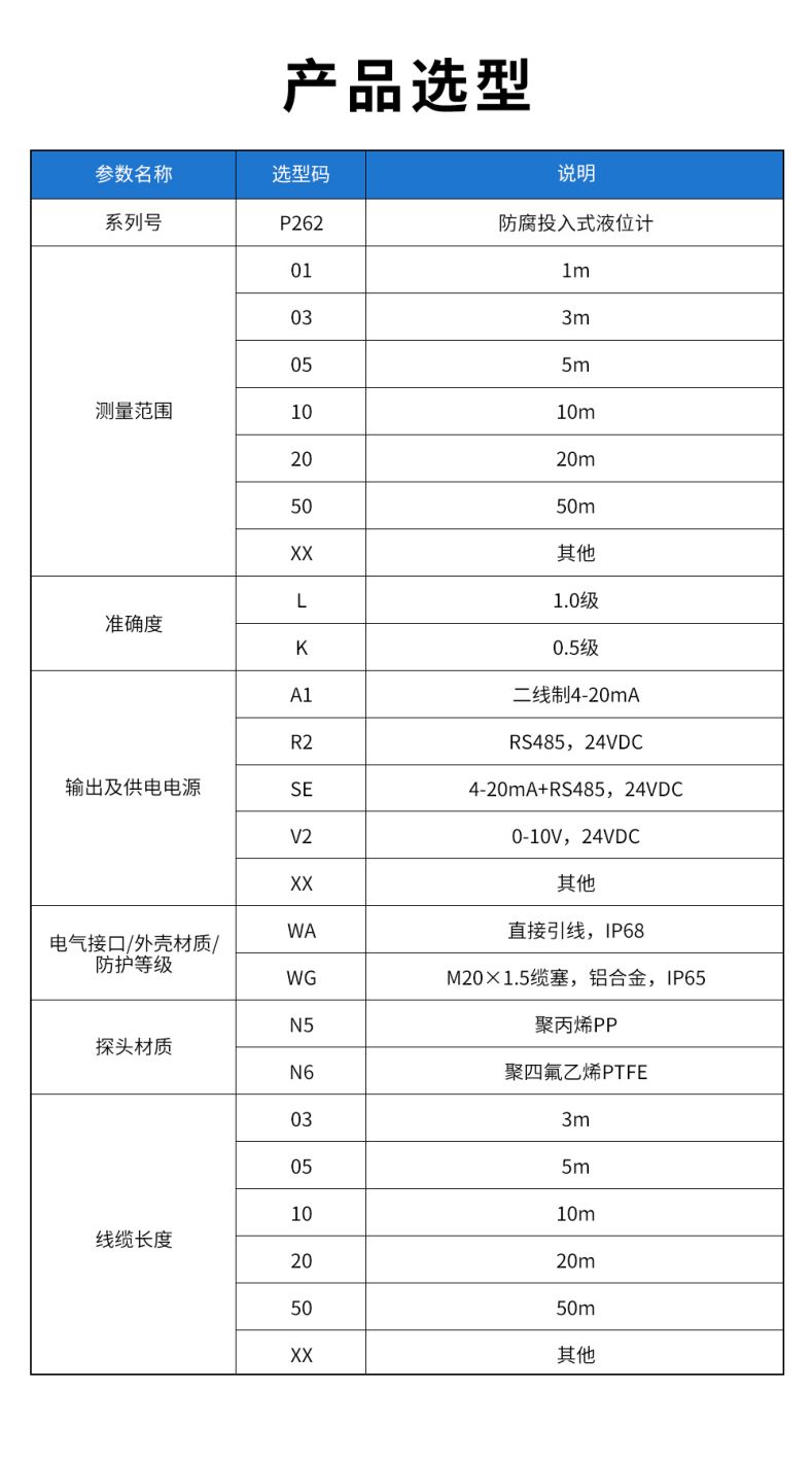 產(chǎn)品名稱:聯(lián)測_P262/P262-B防腐投入式液位計/水位計_陶瓷芯體_