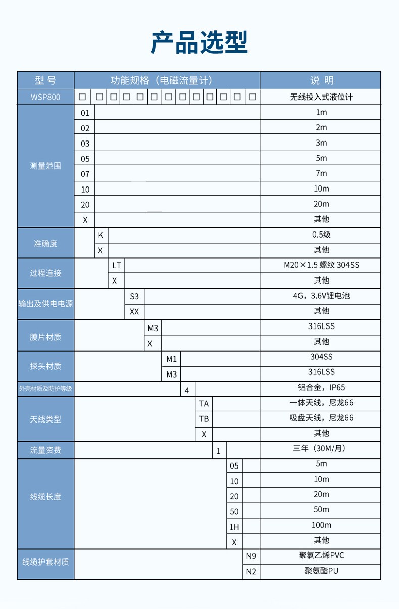 產品名稱:聯測_WSP800 無線投入式液位計/油田、水利、消防管網/工作溫度范圍(-30~70)℃/