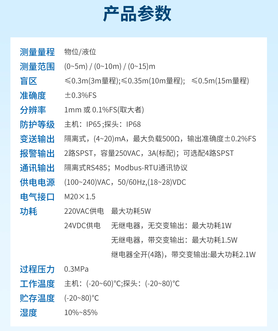 產品名稱:超聲波液位計(測量液位/物位),是一種非接觸式、高可靠性、高性價比、易安裝維護的液位/物位測量儀器